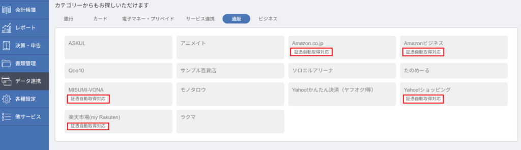 Amazonなど一部のサービスについては、データ連携により証憑を自動的に取得・保存されます。手作業でのダウンロード・保存は不要になります。
