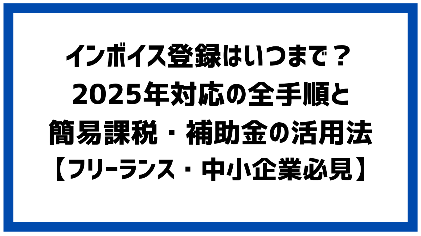 インボイス登録はいつまで?2025年対応の全手順と簡易課税・補助金の活用法【フリーランス・中小企業必見】