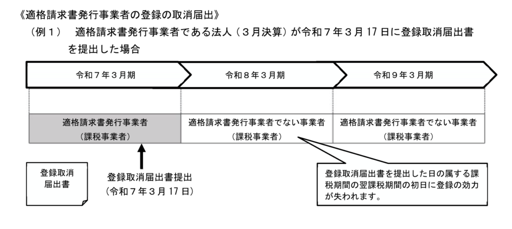 いずれの場合も、一度登録すると2年間は継続が必要で、取り消す際は「取り消したい課税期間の初日から起算して15日前」までに届出を行います。
